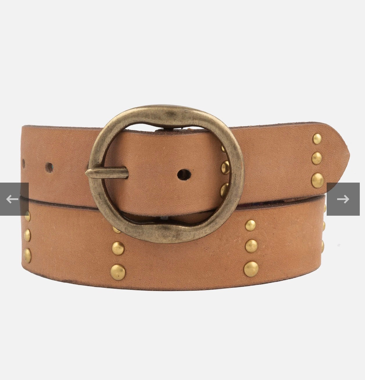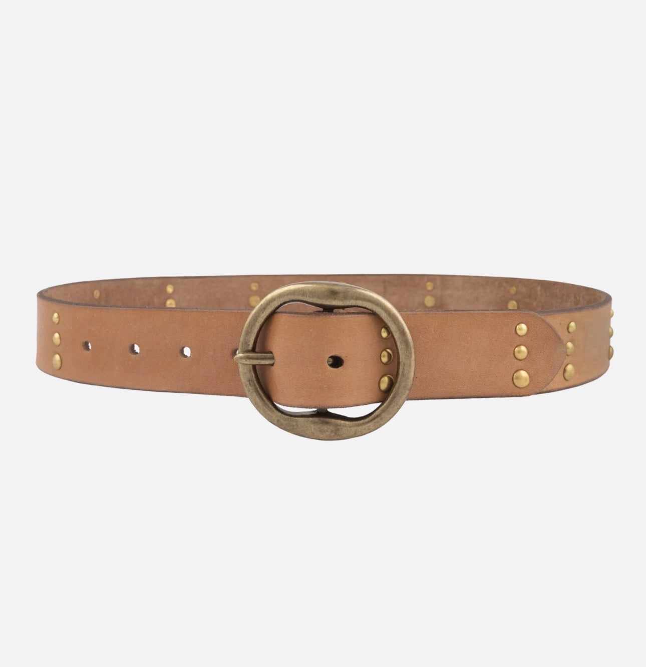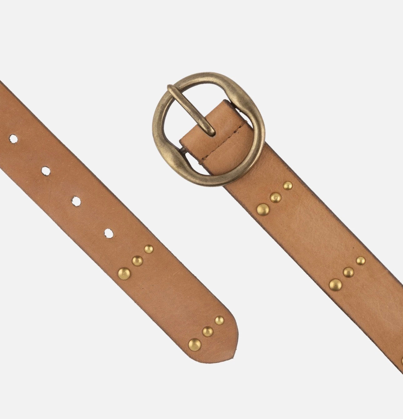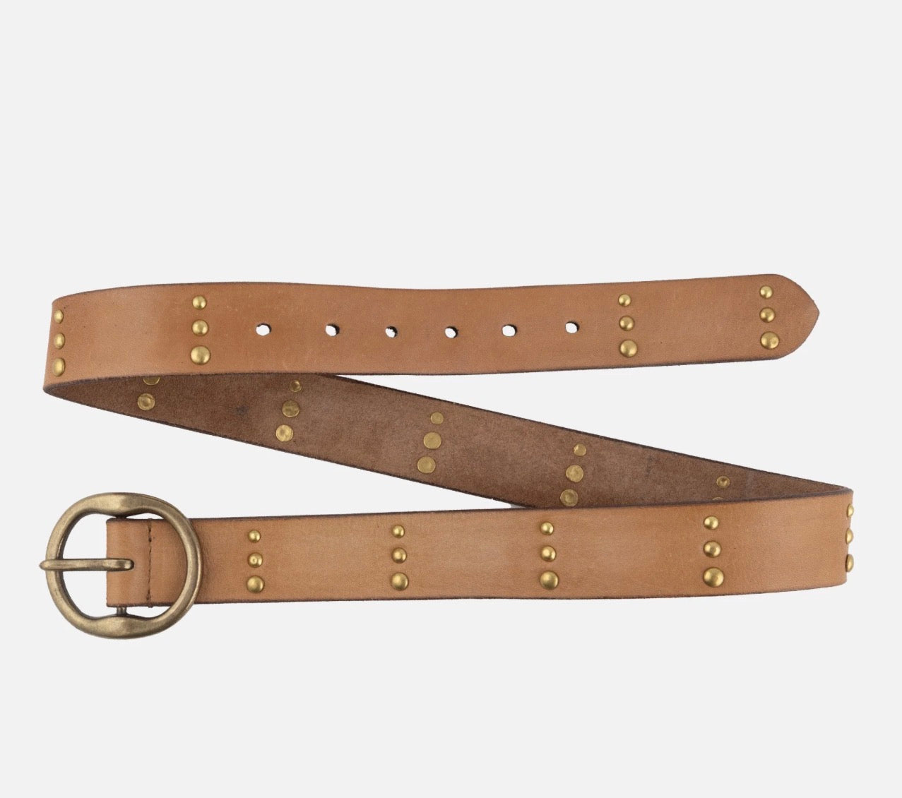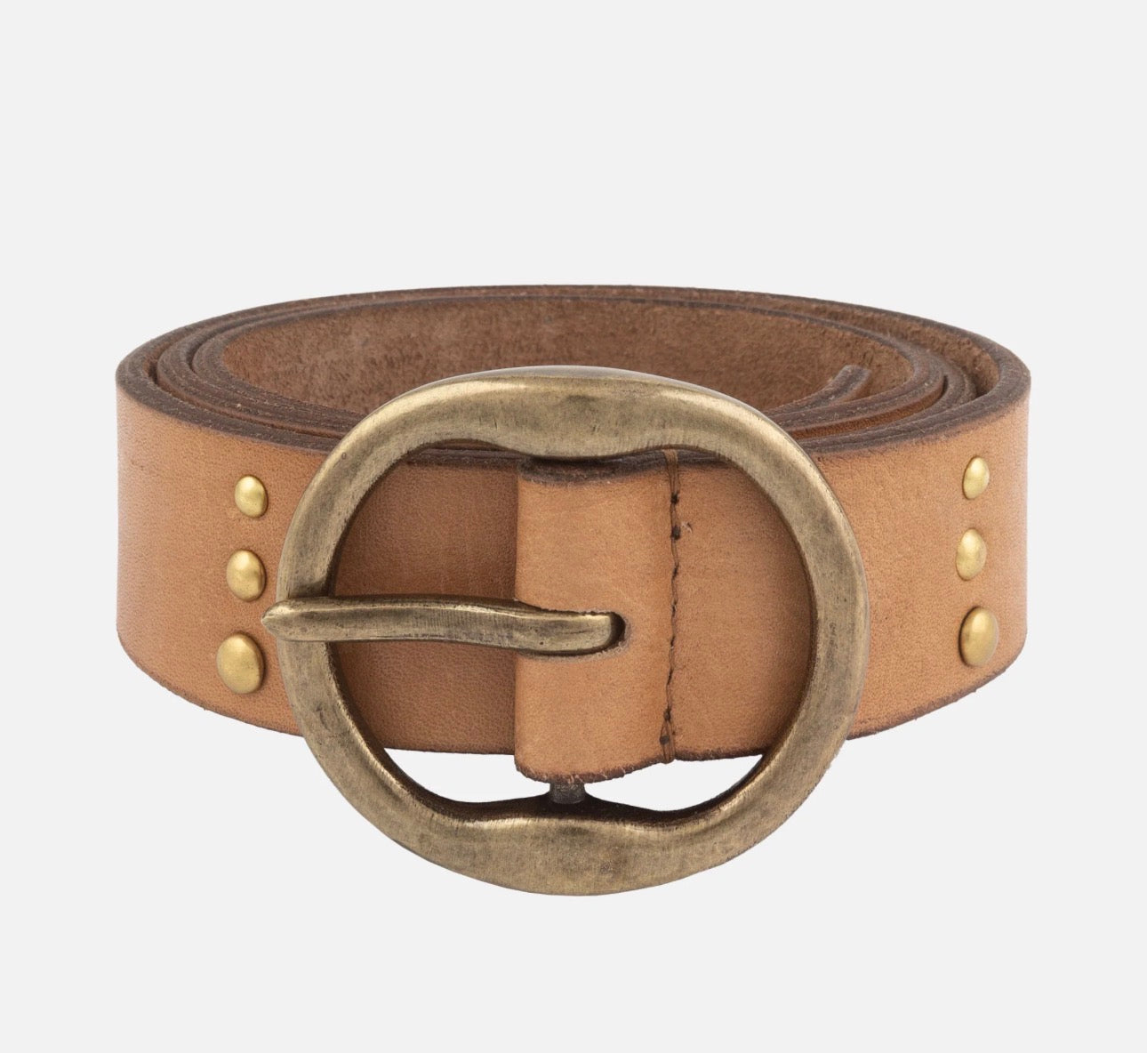 Elevate your outfits year-round with Dion, the perfect jean and dress belt. Crafted from premium buffalo leather and adorned with antique gold studs and a round buckle, Dion exudes a charming western vibe. Its versatile strap, neither too thick nor too thin, pairs effortlessly with your favorite jeans, breezy summer dresses, and more. Make a statement in any season with the Dion western belt.