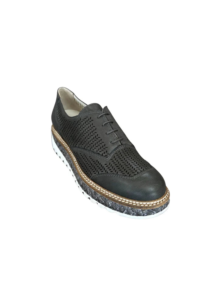 Discover the Liz, where classic design meets modern flair. Handcrafted with meticulous attention to detail in Spain, this shoe features a distinctive lace-tied vamp, set against a custom perforated upper for a look that's both stylish and breathable. The smooth cap-toe and heel bring a polished contrast, while the double light brown natural salpa welt adds durability with an artisanal edge.